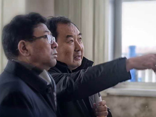 2019年1月8日在新公司,董事長(zhǎng)崔洪亮向市委書(shū)記王景武介紹油田泥漿不落地壓濾機(jī)情況